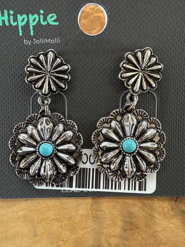 Sold outTurquoise Floral Concho Post Earrings- Regular price
