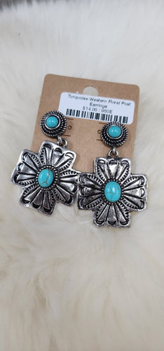 Sold outTurquoise Western Floral Post Earrings- Regular price