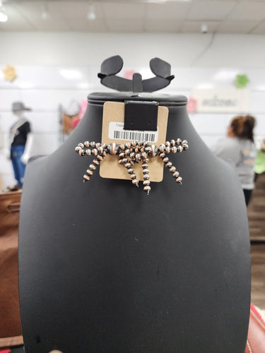 Sold outBlack Pearl Bead Ribbon Post Earrings- Regular price