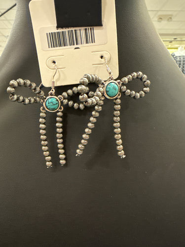 Sold outTurquoise Pearl Ribbon Fishhook Earrings- Regular price