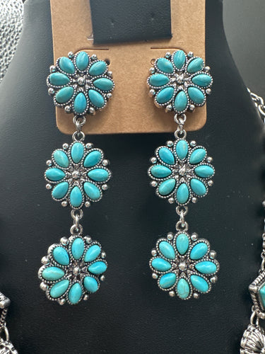 Sold outTurquoise 3-Tier Floral Cluster Post Earrings- Regular price