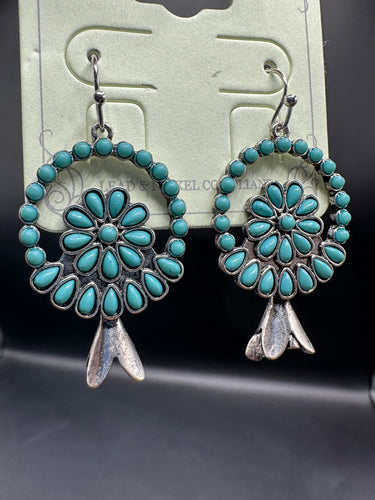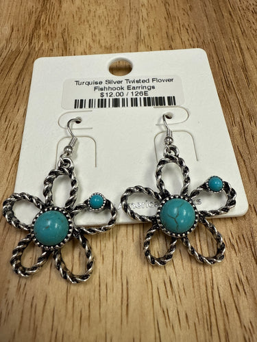Sold outTurquise Silver Twisted Flower Fishhook Earrings- Regular price