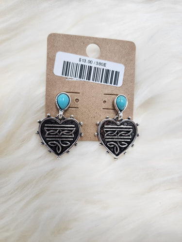 Sold outTurquoise Heart Floral Post Earrings- Regular price