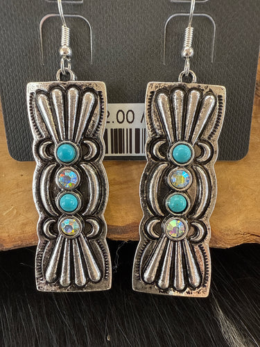 Sold outTurquoise Concho Crystal Fringe Earrings- Regular price