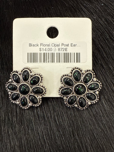 Sold outBlack Floral Opal Post Earrings- Regular price
