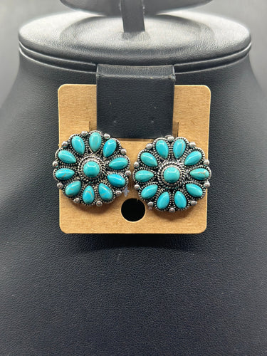 Sold outTurquoise Inspired Floral Clip On Earrings- Regular price