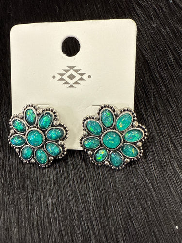 Sold outTurquoise Floral Opal Cluster Post Earrings- Regular price