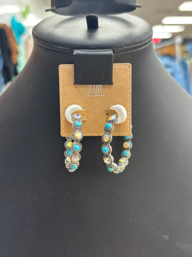 Sold outTurquoise Crystal Hoop Post Earrings- Regular price