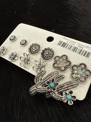 Sold outFloral Crystal Cactus 6PC Earrings Set- Regular price