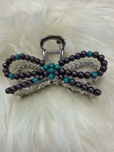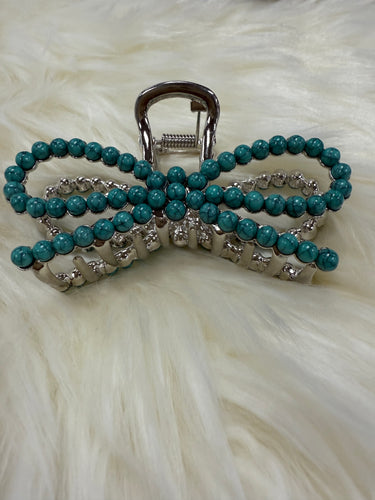 Sold outTurquoise Ribbon Pearl Hair Clip- Regular price