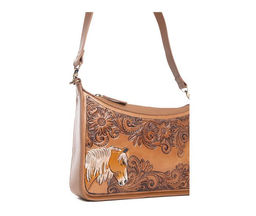 Sold outHand Tooled Horse Leather Crossbody Purse- Regular price