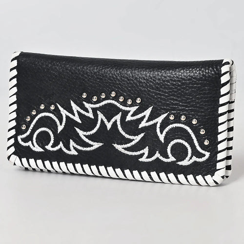 Sold outCowhide Black/White Leather Card Holder Concho Button- Regular price