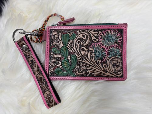 Sold outPink Hand Tooled Wristlet Card Holder- Regular price