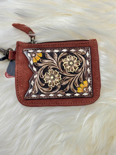 Sold outBrown Suede Floral Tooled Card Holder- Regular price
